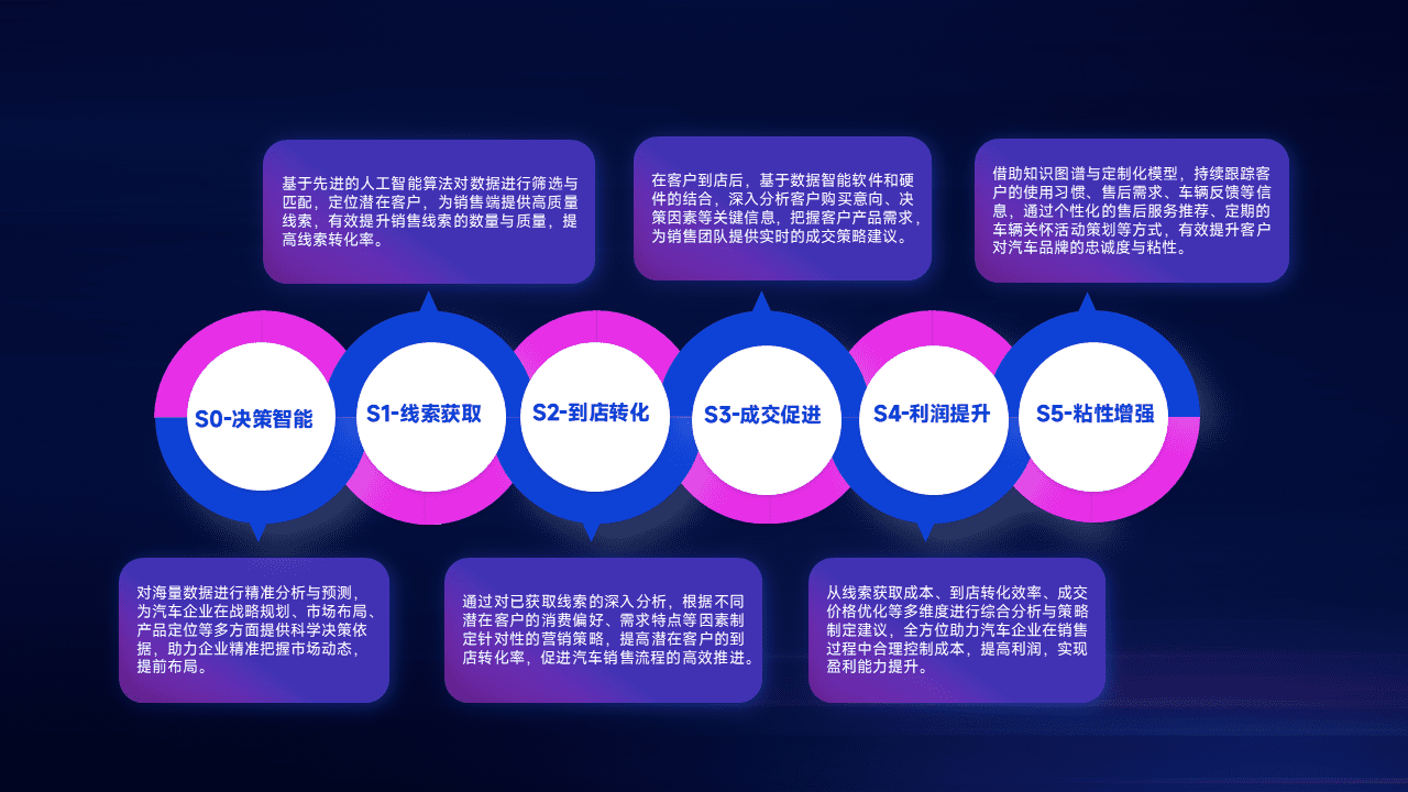通过拓宽潜在客户来源、、优化线索分配并提高到店转化率,,以增强销售效率。。。同时,,,利用线索数据不断优化分析模型,,有效提升转化率,,,扩大营销影响力。。。